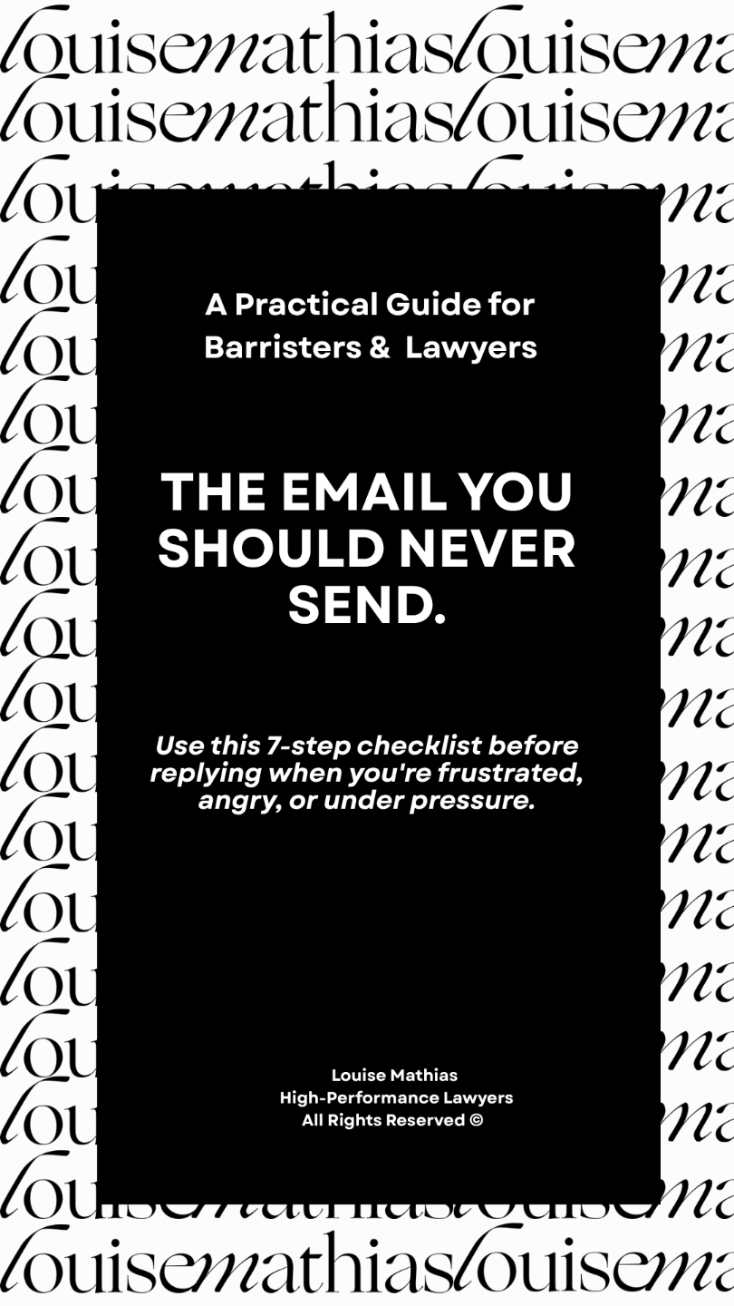 Contact Louise hereJoin for a short email on handling pressure and making decisions in practice by raising your standards, the practices of high performers. Written for barristers, senior counsel, and senior lawyers working in high-pressure rooms.