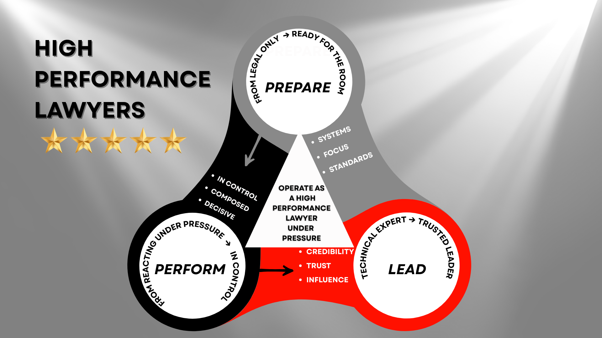 Delivering structured high-performance sessions that help barristers and lawyers prepare effectively, stay in control and perform consistently at a high level, when situations become uncertain or high-pressure, and lead others with trust and influence.